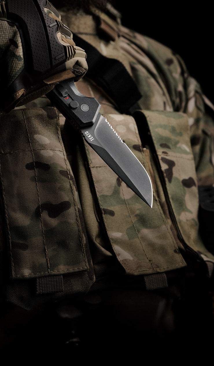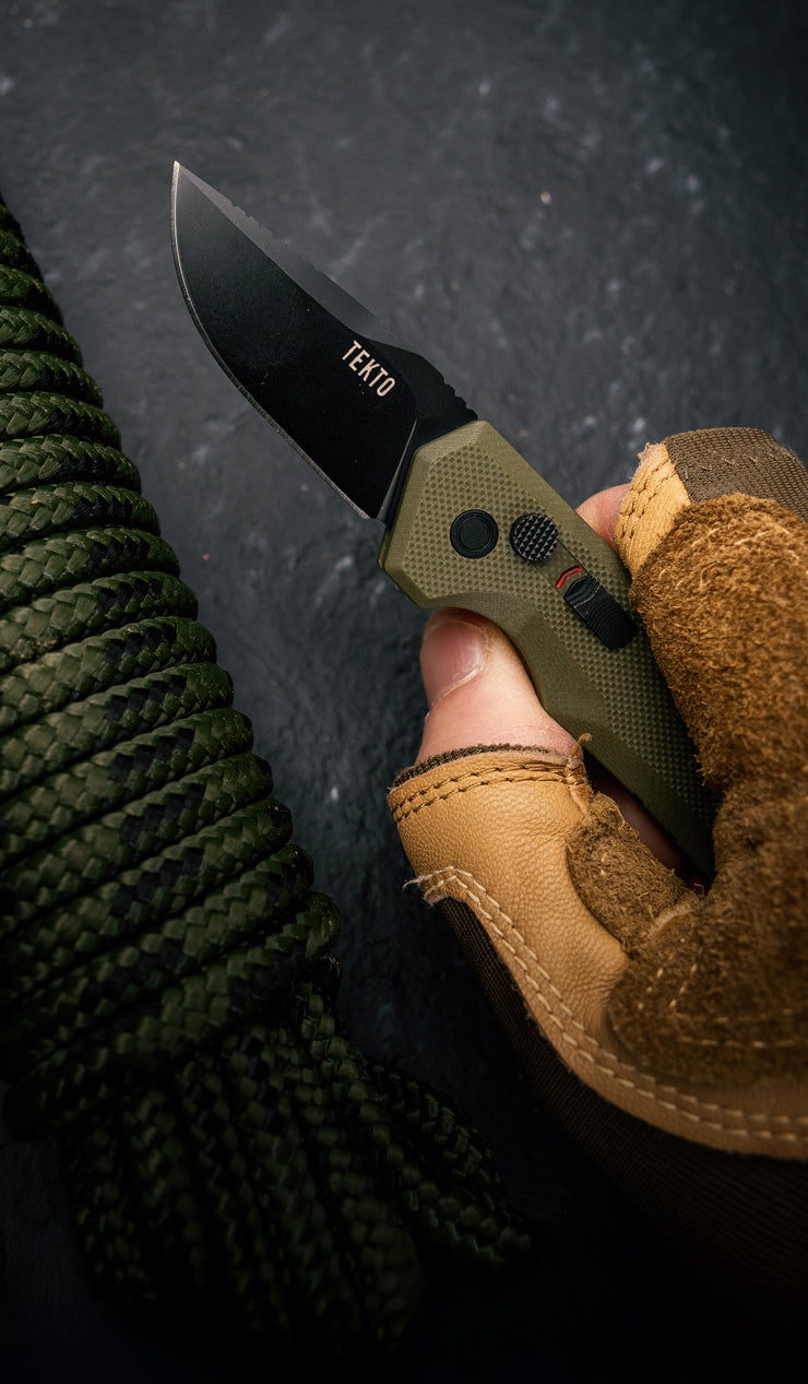 Tekto’s wide range of automatic knives for sale. Check out our A5 Spry or A4 Humvee for a full-sized automatic OTF knife ideal for patrol or tactical use. Need a smaller EDC knife? The A2 Badger and A5 Spry Mini OTF knives are lightweight, concealable, and perfect for daily tasks. Don’t want a standard OTF switchblade? Try the A3 Delta, our automatic OTS knife, excellent for hunting, hiking, or fishing.