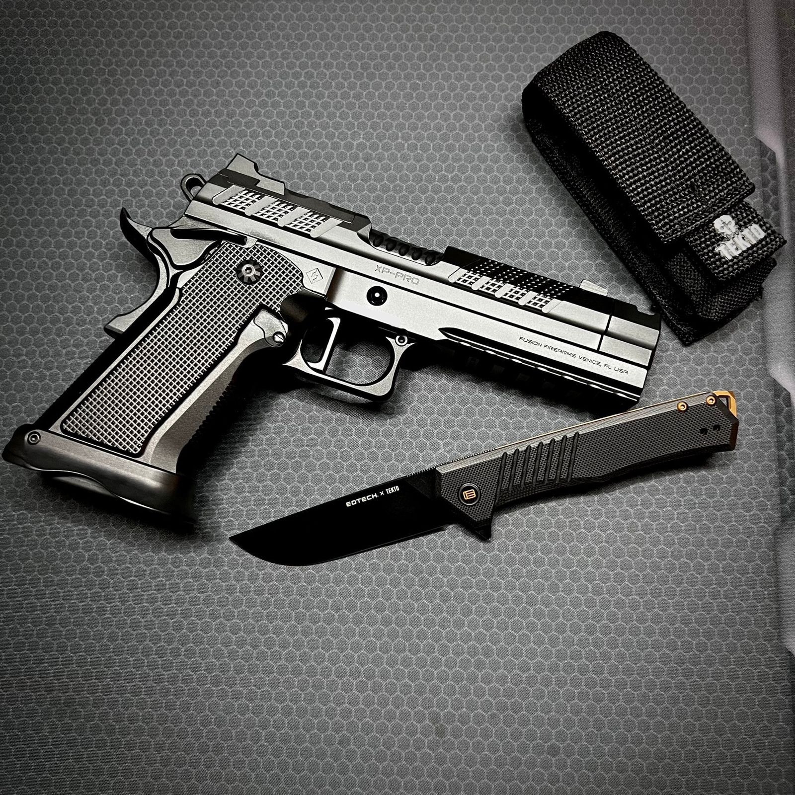 Tekto asked me to review the F1 Alpha and EOTECH knife a few weeks ago. I already own Tekto's F1 Alpha (green scales). I received the knife in a brown-ish box, similar to some of the EOTECH sights I have bought before. The knife is very similar to the original F1 Alpha but it features the EOTECH logo, color, and branding. I haven't had the knife for long but the original F1 Alpha has been exceptional and I have no reason to think this one will be any different. Only change Id recommend is to include a few more EOTECH elements so its a different knife than the F1 Alpha. Overall this is an amazing knife, thanks guys!